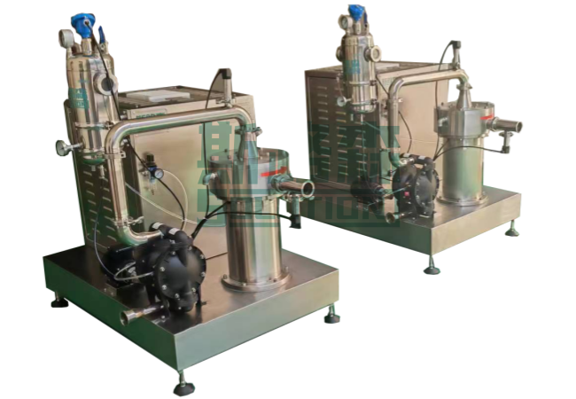 管線式分散均質(zhì)乳化機,也稱在線式均質(zhì)乳化機、連續(xù)式均質(zhì)乳化機,是用于連續(xù)生產(chǎn)或循環(huán)處理精細物料的高性能設(shè)備,工作腔內(nèi)配置一組高精度的多齒定轉(zhuǎn)子,物料經(jīng)過定轉(zhuǎn)子的高速剪切、分散、乳化、均質(zhì)后,達到理想的處理效果。