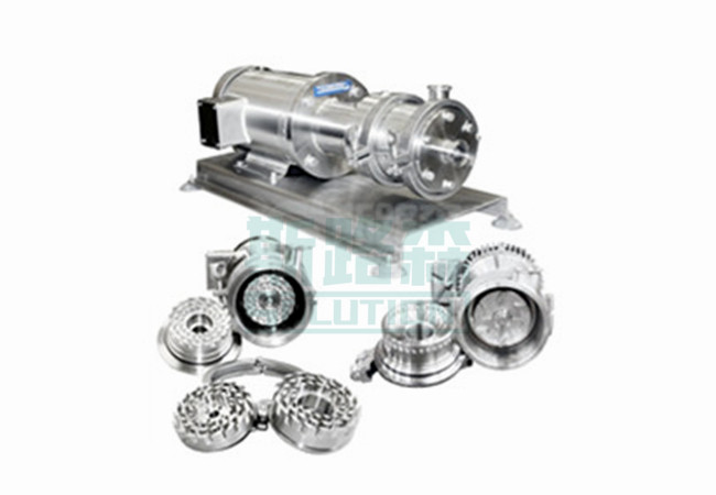 精密加工的混合工作頭中的泵轉(zhuǎn)子高速旋轉(zhuǎn)將液體和固體物料壓入轉(zhuǎn)子/定子組件。